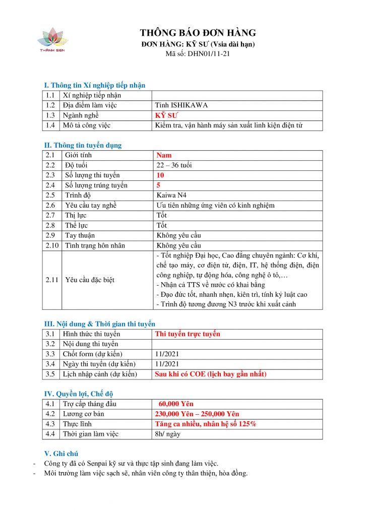 Thông tin chi tiết về đơn hàng và chương trình lao động tại Nhật Bản, xin vui lòng liên hệ: