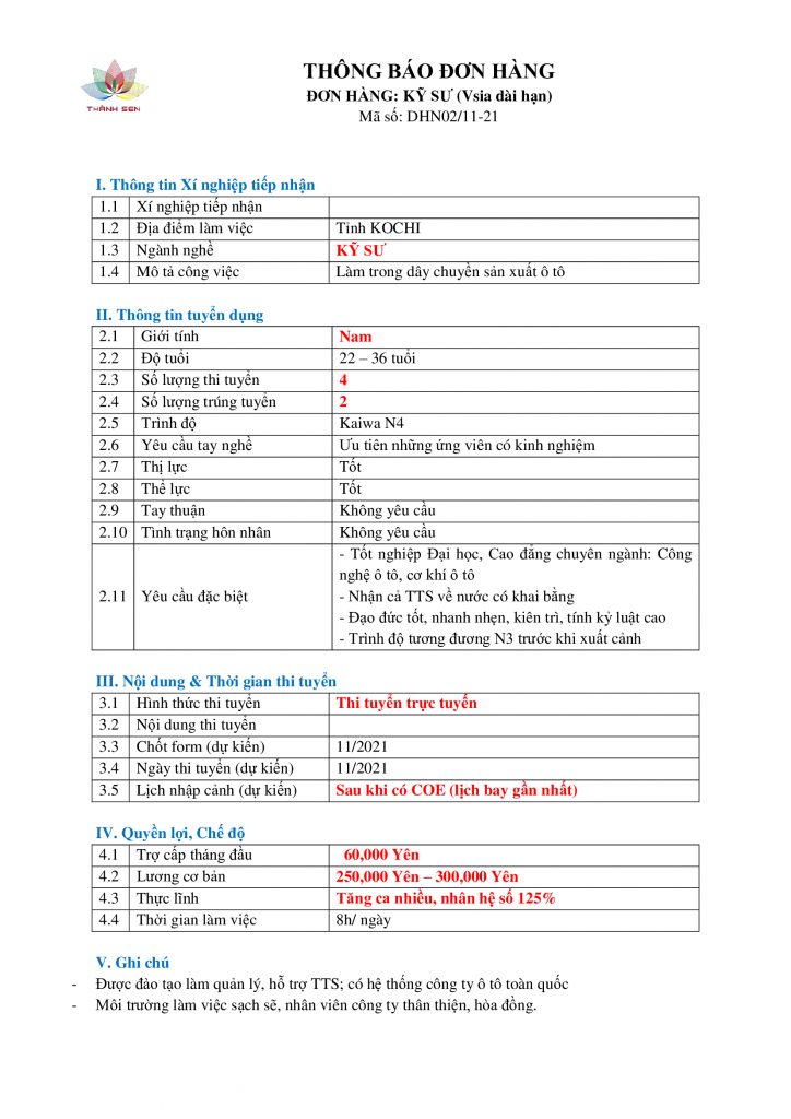 Thông tin chi tiết về đơn hàng và chương trình lao động tại Nhật Bản, xin vui lòng liên hệ: