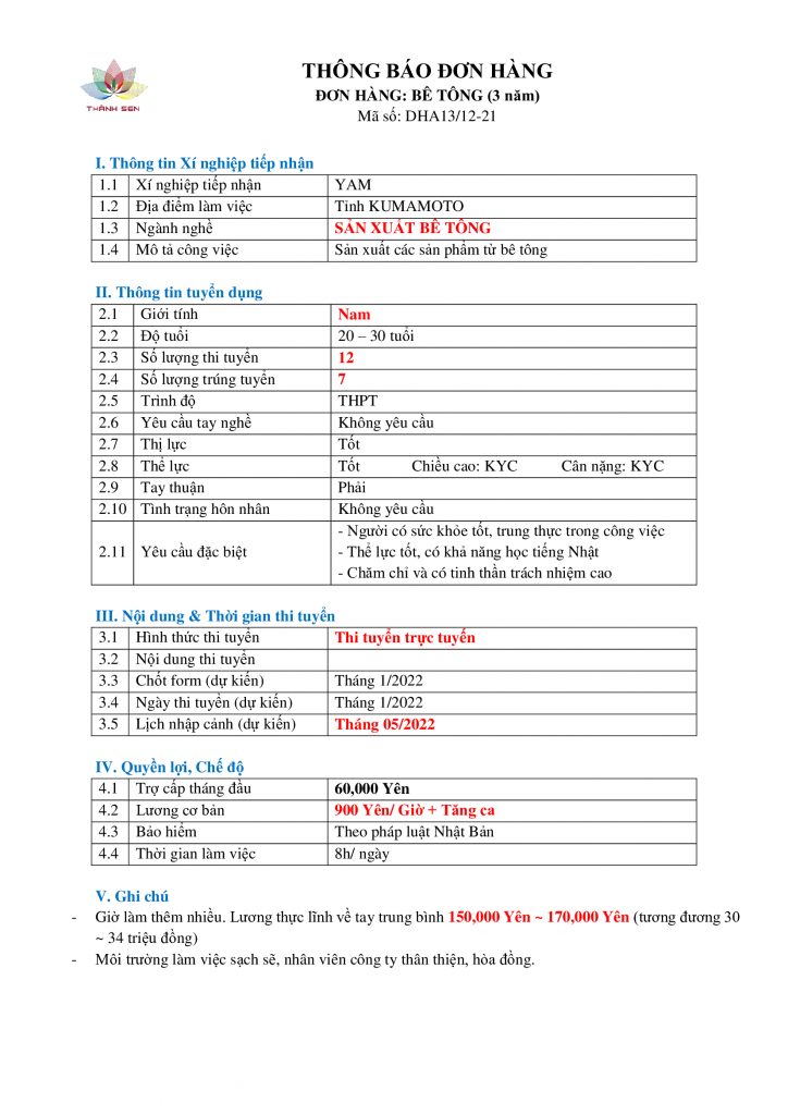 Thông tin chi tiết về đơn hàng và chương trình lao động tại Nhật Bản, xin vui lòng liên hệ:
