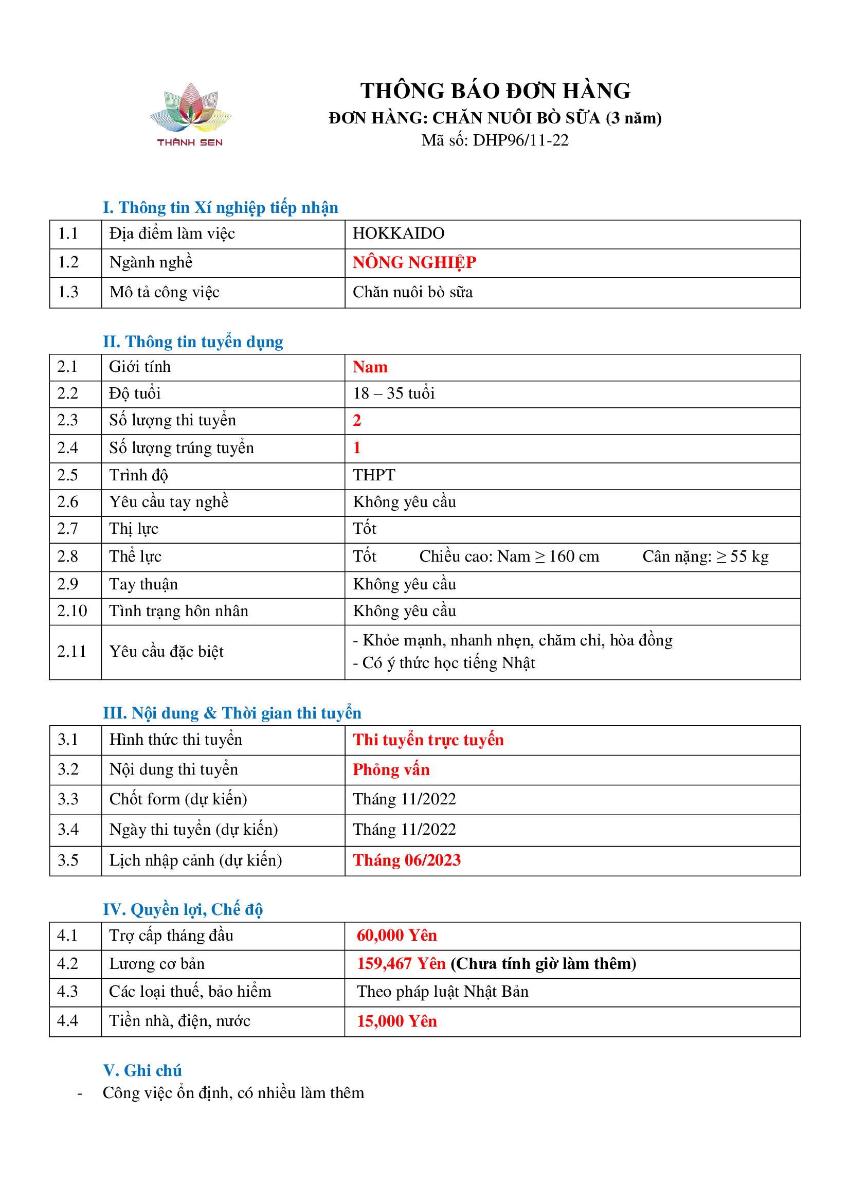 Thông tin chi tiết về đơn hàng và chương trình lao động tại Nhật Bản, xin vui lòng liên hệ: