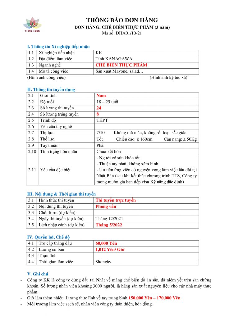 Thông tin chi tiết về đơn hàng và chương trình lao động tại Nhật Bản, xin vui lòng liên hệ: