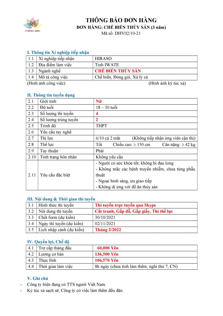 Thông tin chi tiết về đơn hàng và chương trình lao động tại Nhật Bản, xin vui lòng liên hệ: