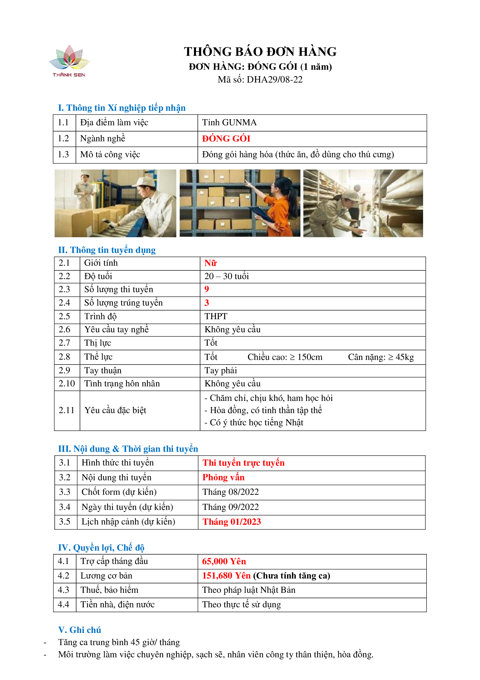 Thông tin chi tiết về đơn hàng và chương trình lao động tại Nhật Bản, xin vui lòng liên hệ: