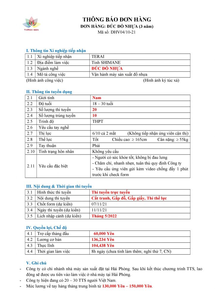 Thông tin chi tiết về đơn hàng và chương trình lao động tại Nhật Bản, xin vui lòng liên hệ: