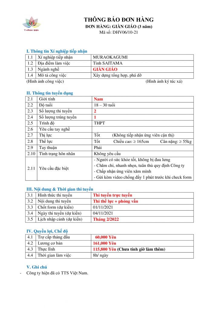 Thông tin chi tiết về đơn hàng và chương trình lao động tại Nhật Bản, xin vui lòng liên hệ: