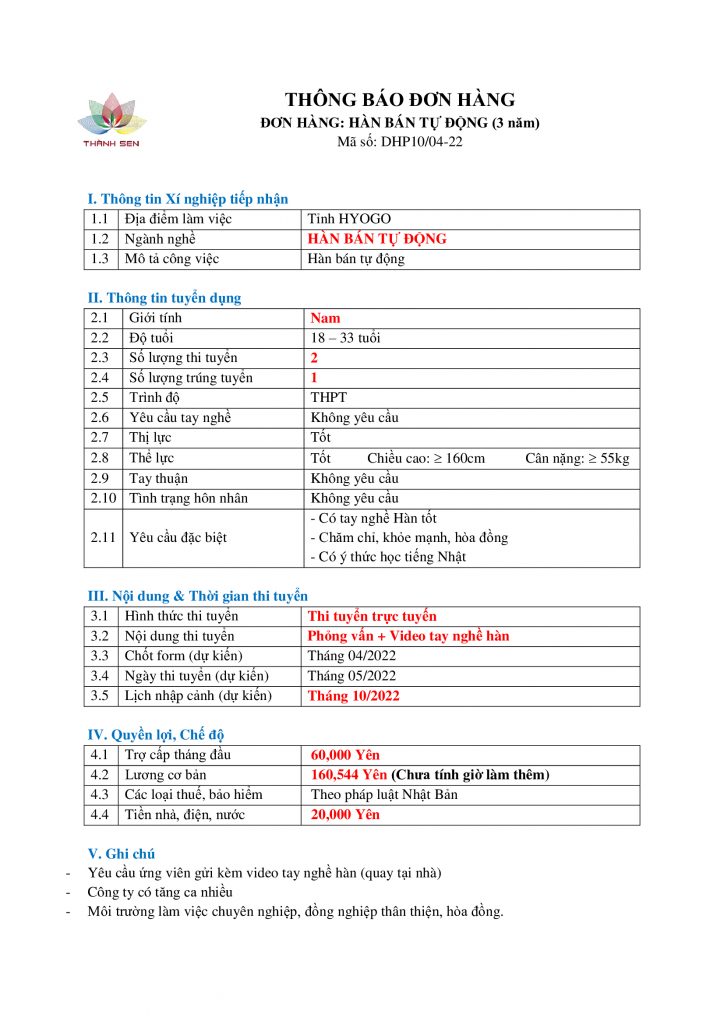 Thông tin chi tiết về đơn hàng và chương trình lao động tại Nhật Bản, xin vui lòng liên hệ: