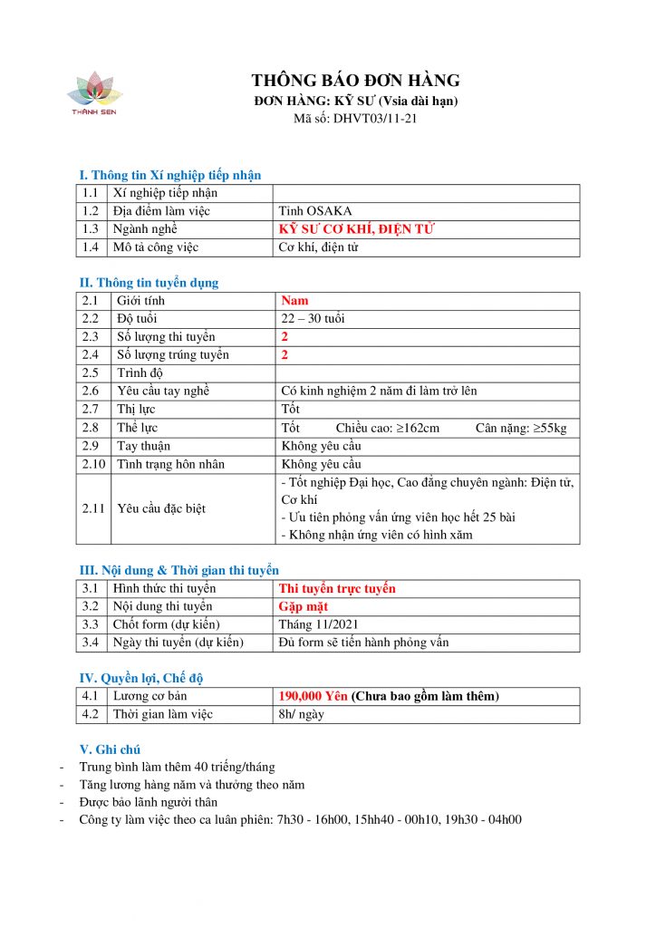 Thông tin chi tiết về đơn hàng và chương trình lao động tại Nhật Bản, xin vui lòng liên hệ: