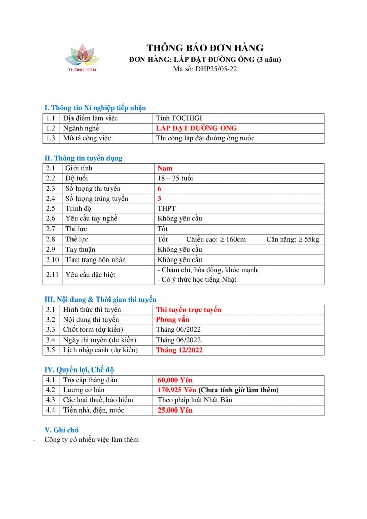 Thông tin chi tiết về đơn hàng và chương trình lao động tại Nhật Bản, xin vui lòng liên hệ: