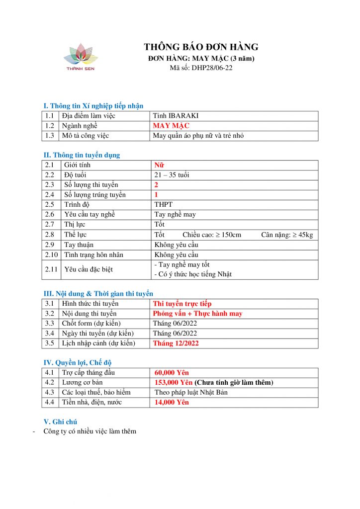 Thông tin chi tiết về đơn hàng và chương trình lao động tại Nhật Bản, xin vui lòng liên hệ: