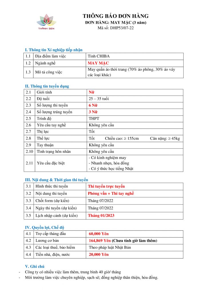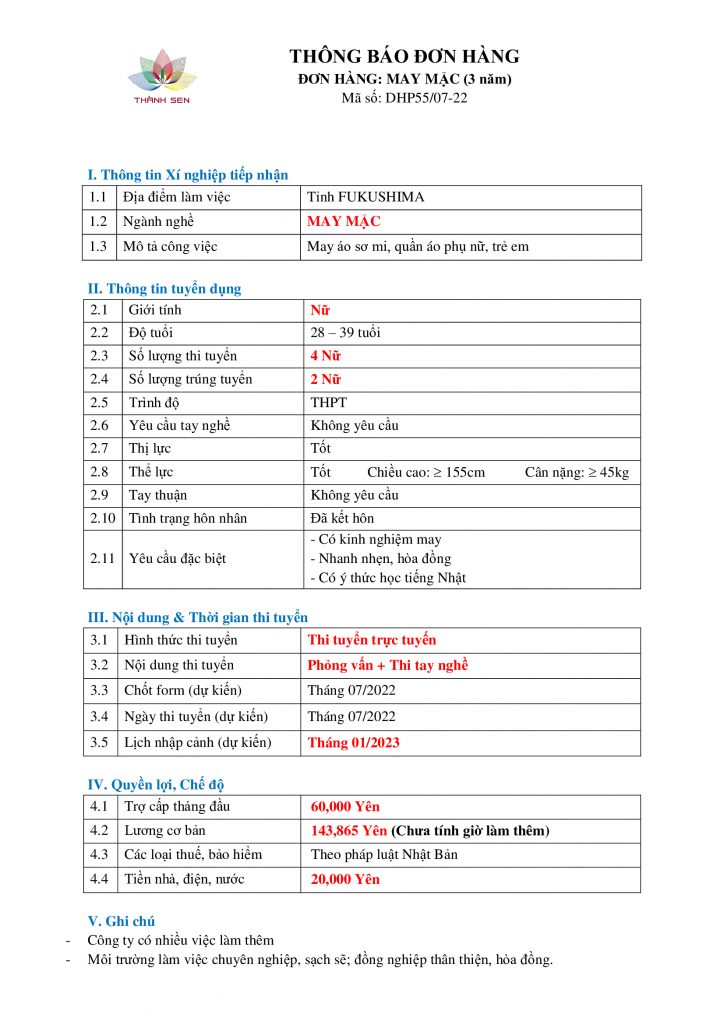 Thông tin chi tiết về đơn hàng và chương trình lao động tại Nhật Bản, xin vui lòng liên hệ: