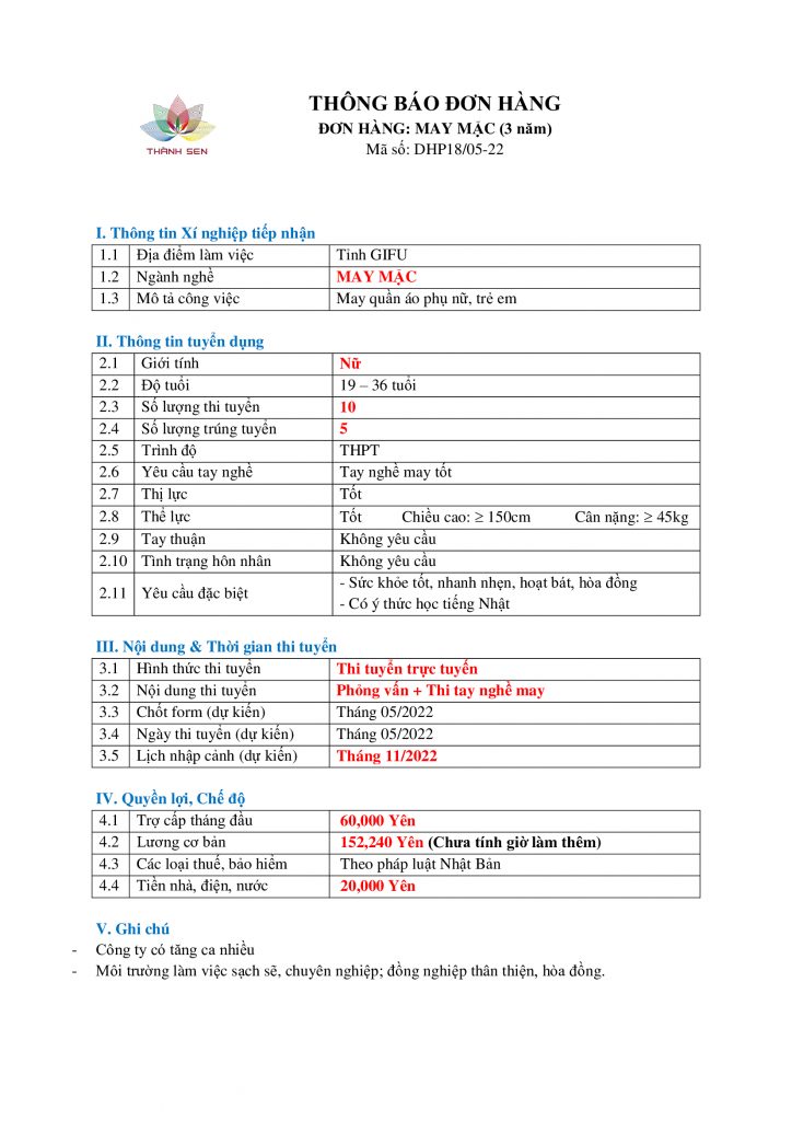 Thông tin chi tiết về đơn hàng và chương trình lao động tại Nhật Bản, xin vui lòng liên hệ: