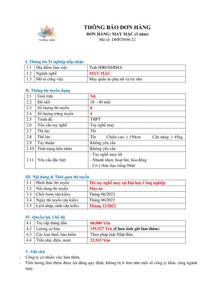 Thông tin chi tiết về đơn hàng và chương trình lao động tại Nhật Bản, xin vui lòng liên hệ: