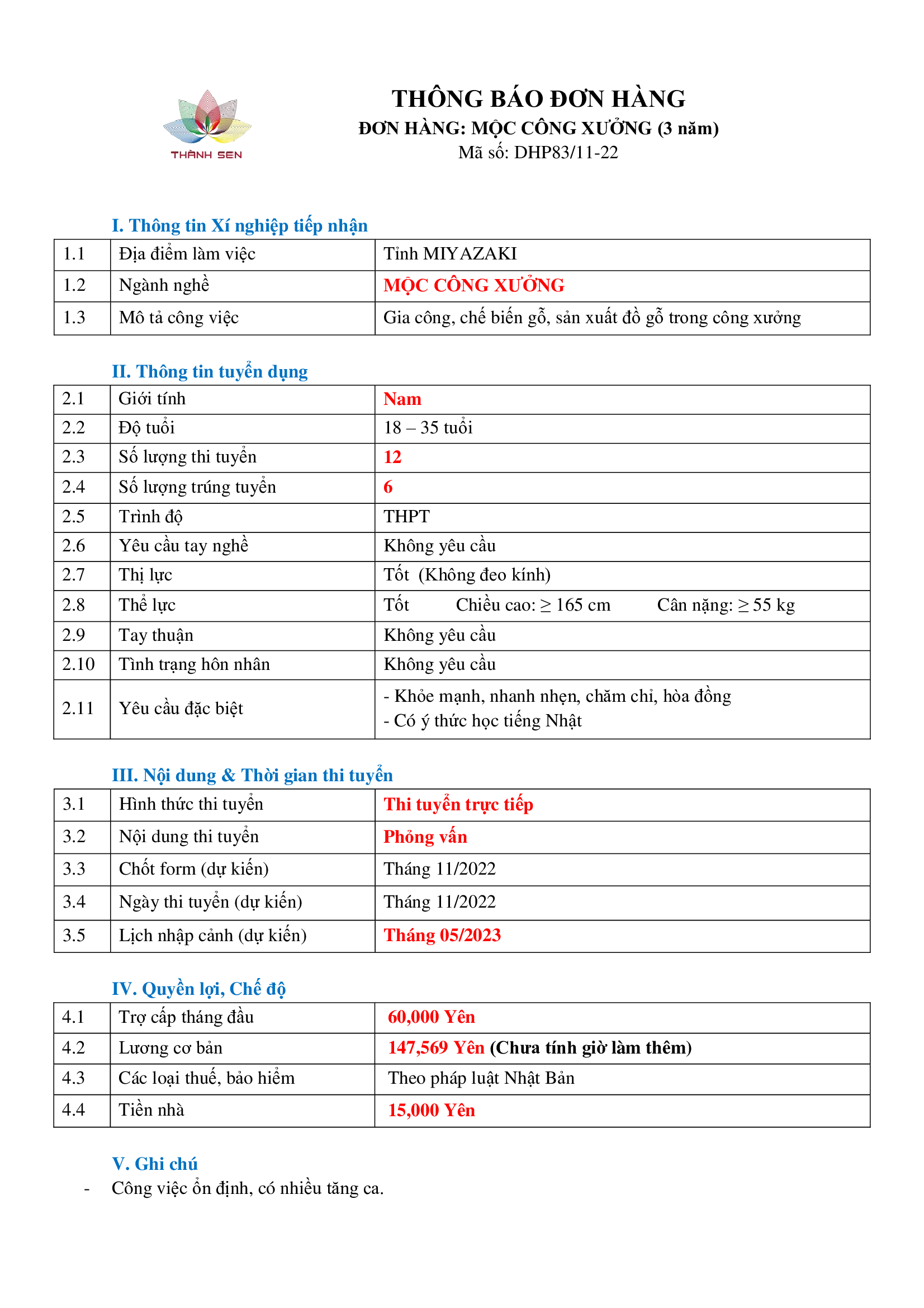 Thông tin chi tiết về đơn hàng và chương trình lao động tại Nhật Bản, xin vui lòng liên hệ: