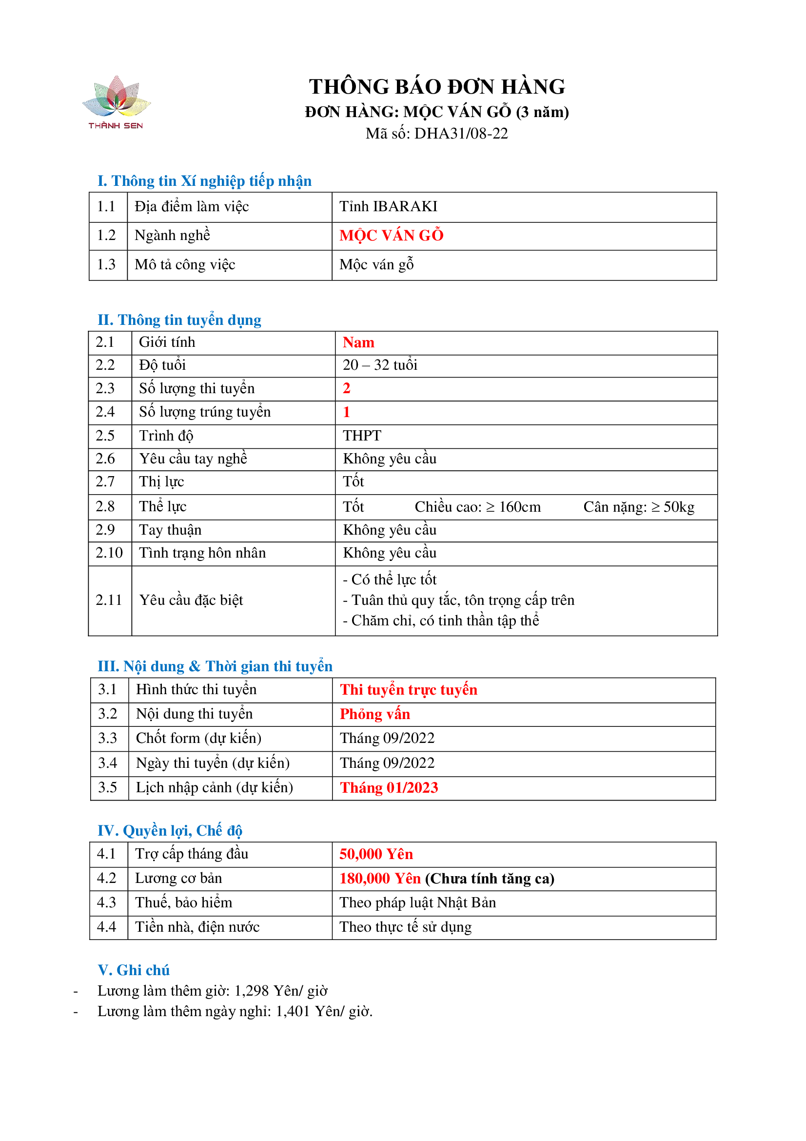 Thông tin chi tiết về đơn hàng và chương trình lao động tại Nhật Bản, xin vui lòng liên hệ: