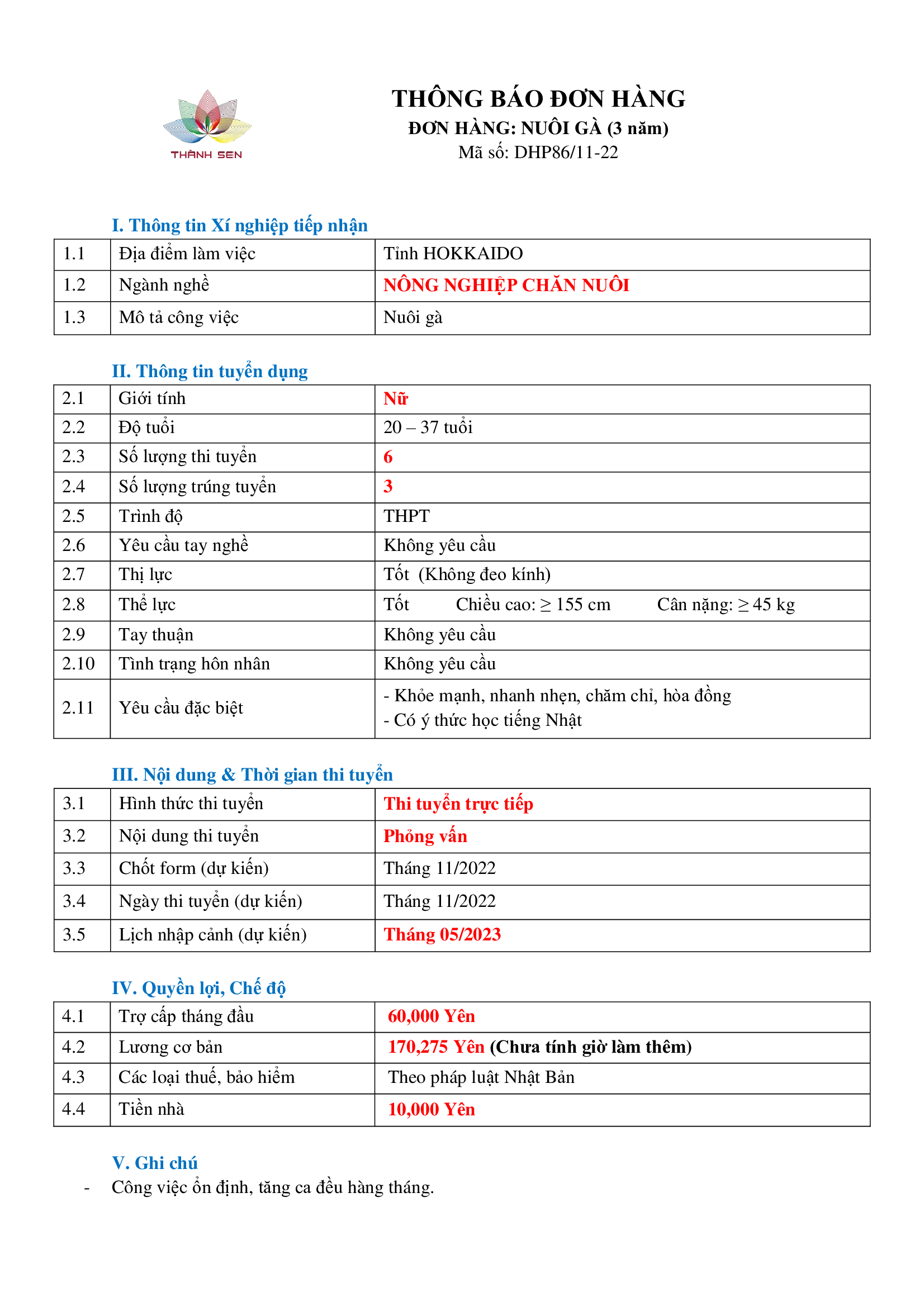 Thông tin chi tiết về đơn hàng và chương trình lao động tại Nhật Bản, xin vui lòng liên hệ:
