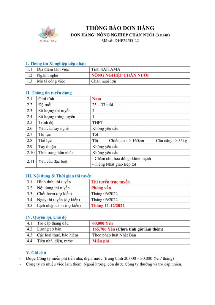 Thông tin chi tiết về đơn hàng và chương trình lao động tại Nhật Bản, xin vui lòng liên hệ: