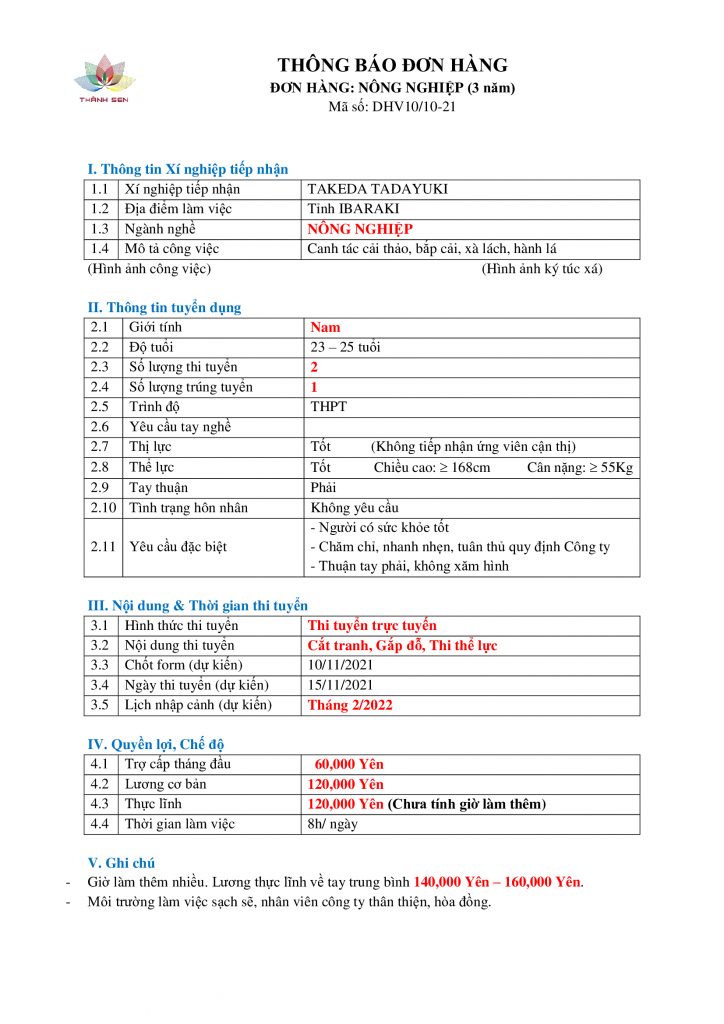 Thông tin chi tiết về đơn hàng và chương trình lao động tại Nhật Bản, xin vui lòng liên hệ: