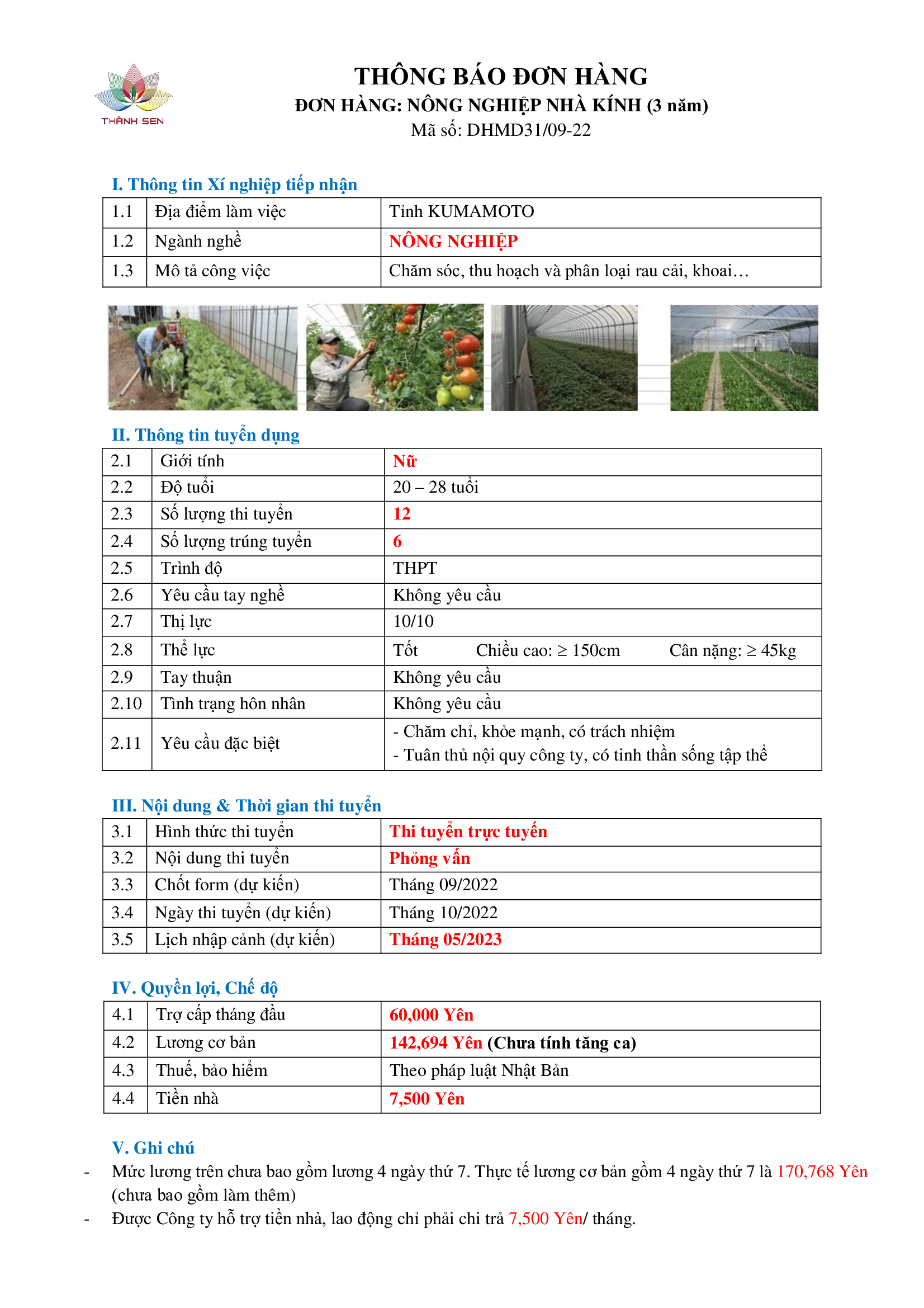 Thông tin chi tiết về đơn hàng và chương trình lao động tại Nhật Bản, xin vui lòng liên hệ: