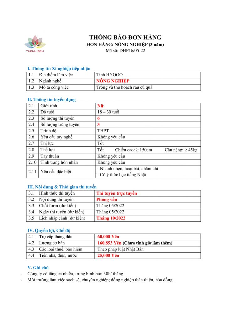 Thông tin chi tiết về đơn hàng và chương trình lao động tại Nhật Bản, xin vui lòng liên hệ: