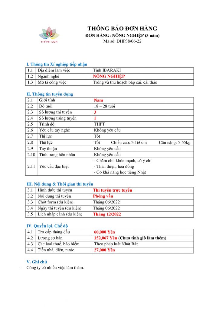 Thông tin chi tiết về đơn hàng và chương trình lao động tại Nhật Bản, xin vui lòng liên hệ: