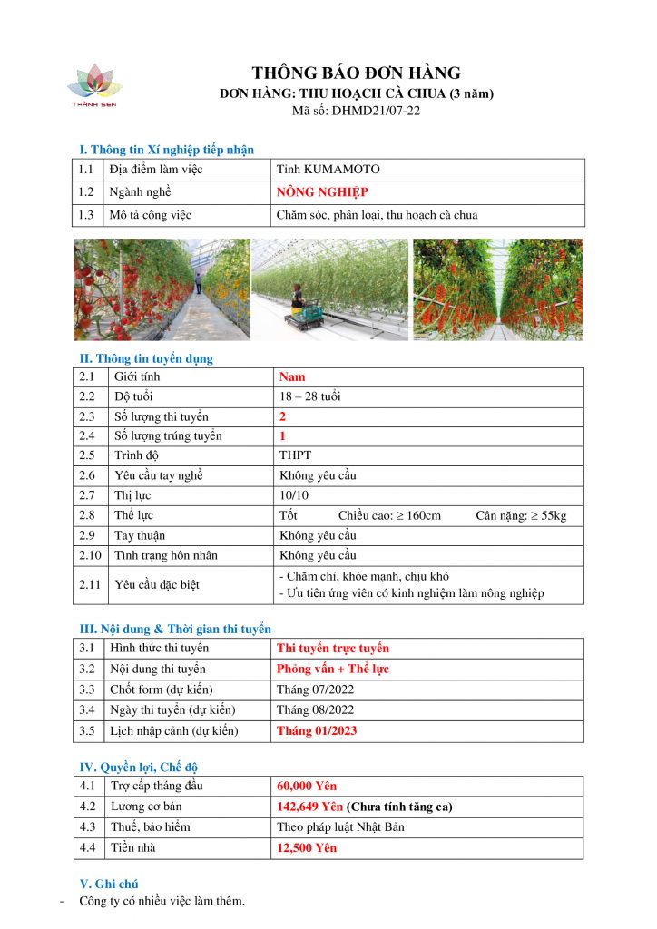 Thông tin chi tiết về đơn hàng và chương trình lao động tại Nhật Bản, xin vui lòng liên hệ: