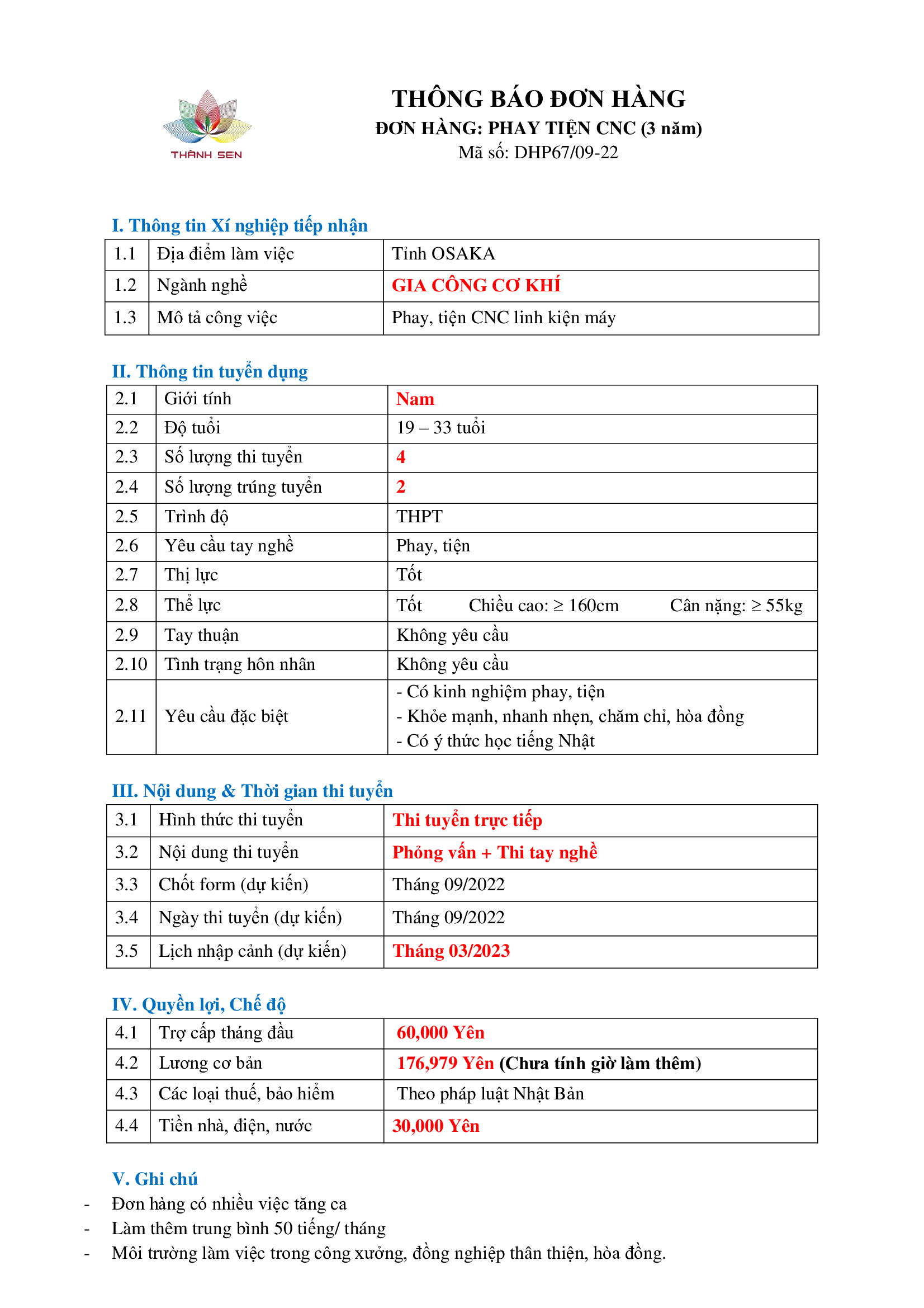 Thông tin chi tiết về đơn hàng và chương trình lao động tại Nhật Bản, xin vui lòng liên hệ:
