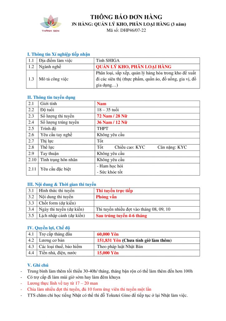 Thông tin chi tiết về đơn hàng và chương trình lao động tại Nhật Bản, xin vui lòng liên hệ: