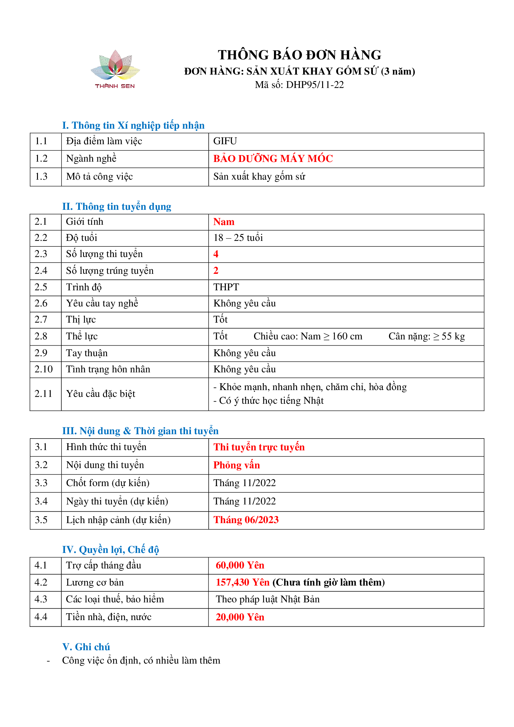 Thông tin chi tiết về đơn hàng và chương trình lao động tại Nhật Bản, xin vui lòng liên hệ: