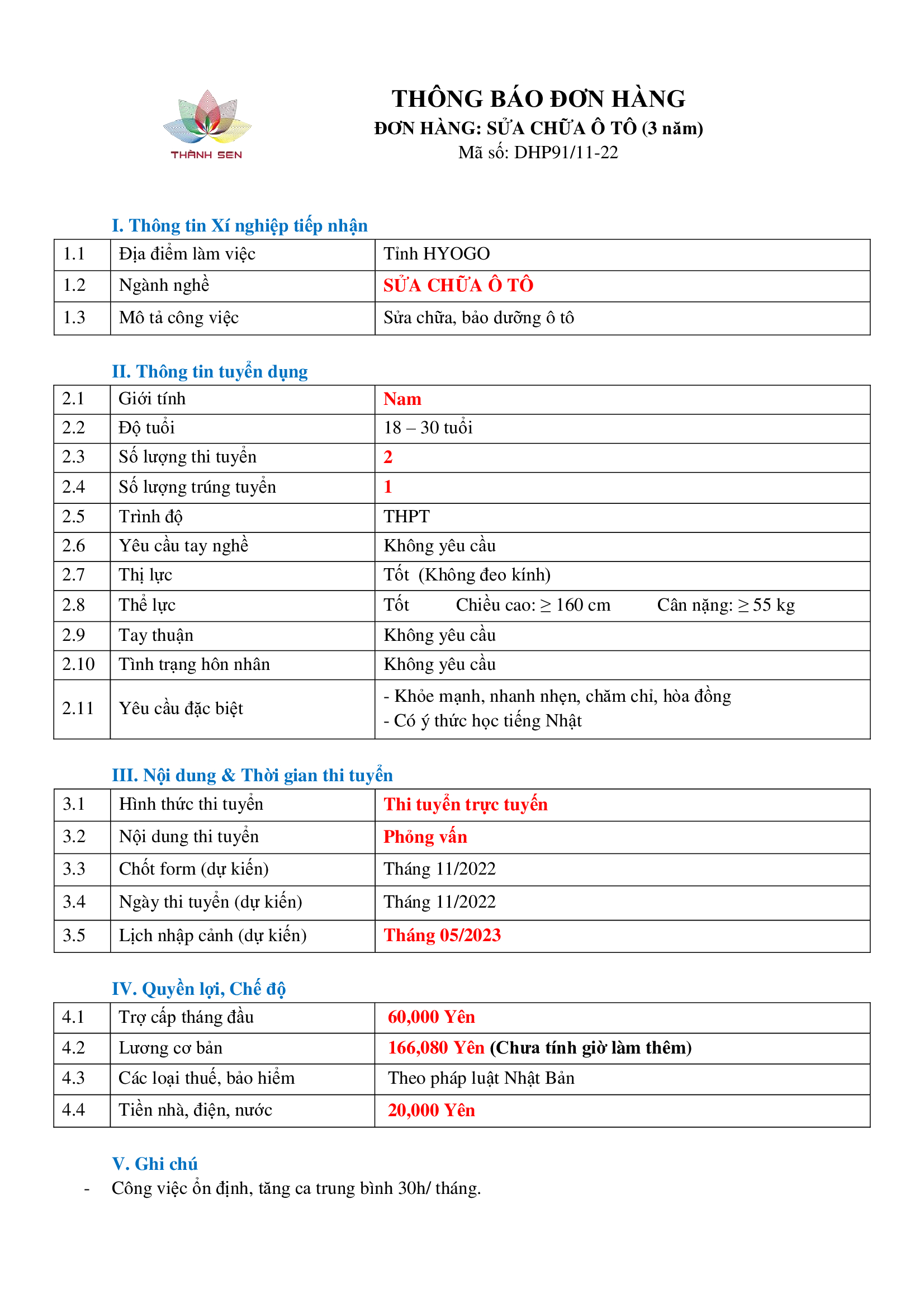 Thông tin chi tiết về đơn hàng và chương trình lao động tại Nhật Bản, xin vui lòng liên hệ: