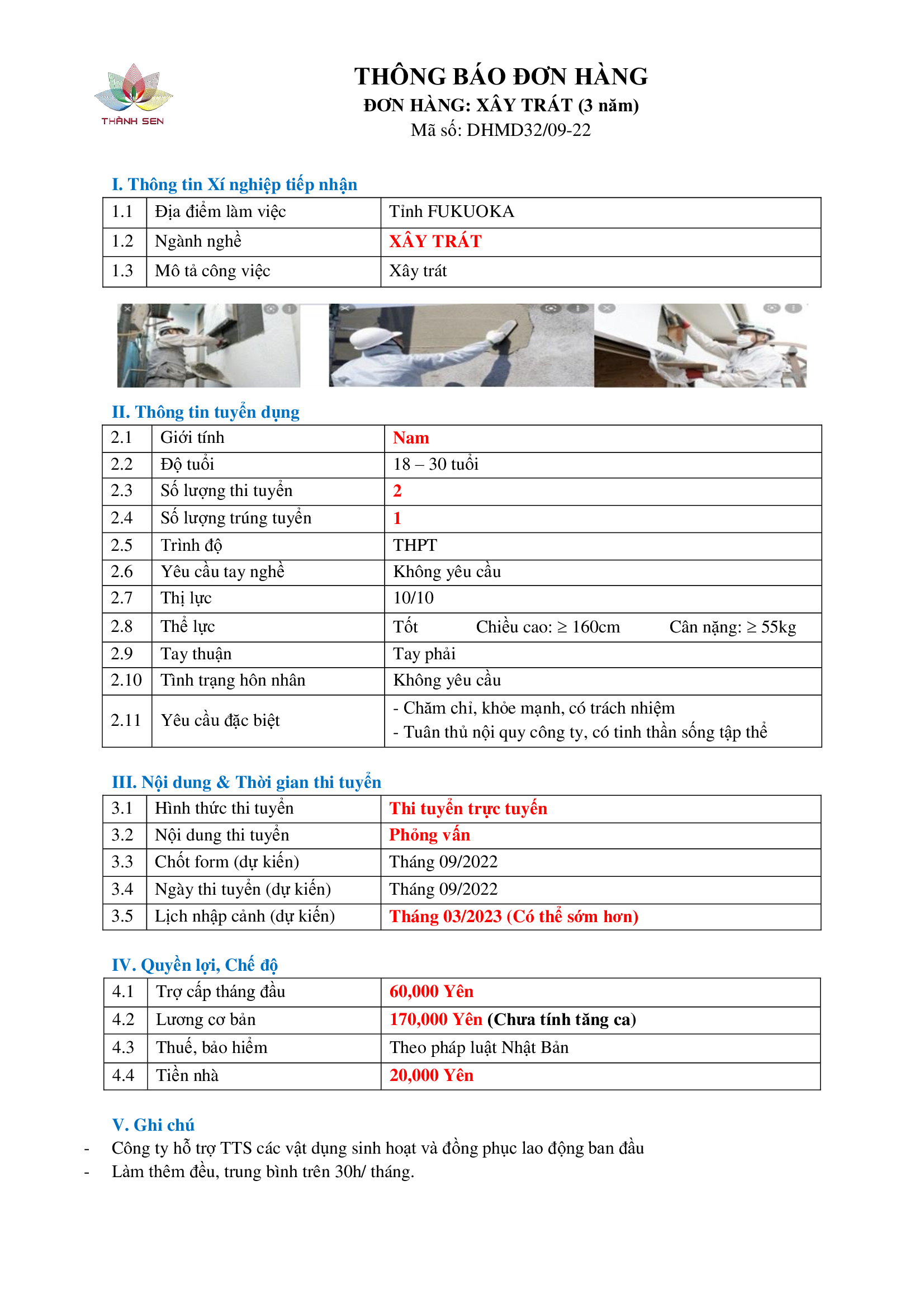 Thông tin chi tiết về đơn hàng và chương trình lao động tại Nhật Bản, xin vui lòng liên hệ: