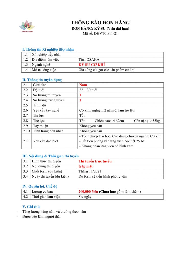 Thông tin chi tiết về đơn hàng và chương trình lao động tại Nhật Bản, xin vui lòng liên hệ: