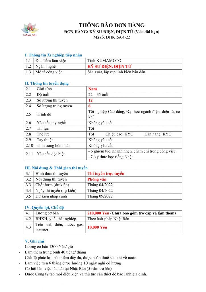 Thông tin chi tiết về đơn hàng và chương trình lao động tại Nhật Bản, xin vui lòng liên hệ: